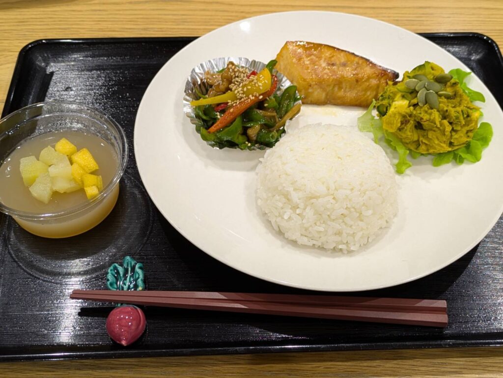メニュー/カジキマグとの照り焼き、かぼちゃサラダ、チンジャオロース、リンゴゼリー