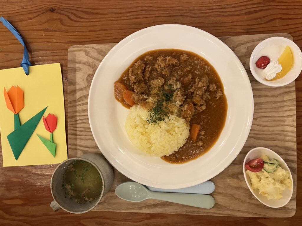 🌸今月から小学生中学年以上の子どもたちに、少しだけ盛り付けなどをお手伝いしていただきます~!!